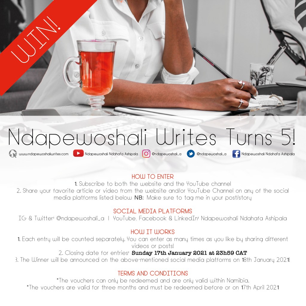 www.ndapewoshaliwrites.com turns five years old on 18th January 2021! In those five years, I’ve learnt so much and grown incredibly from your interactions, conversations and contributions.